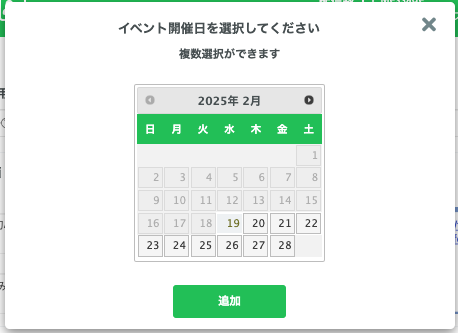 開催日追加>カレンダーから日付を選択>追加