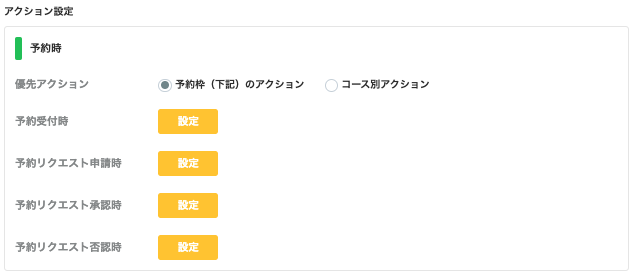 予約時/変更時/キャンセル時に起こすアクションをそれぞれ設定できます。