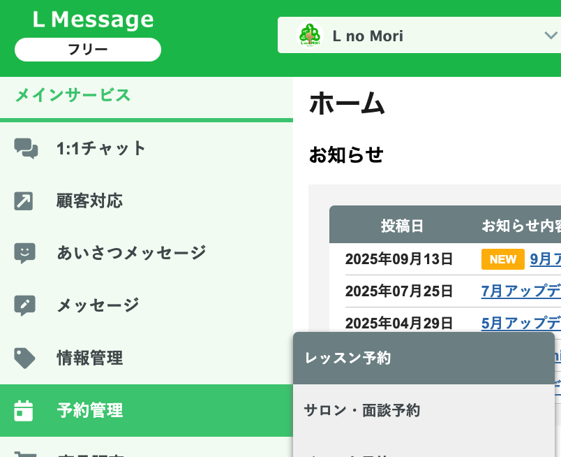 レッスン予約は、エルメに備わっている予約管理機能のうちの一つです。